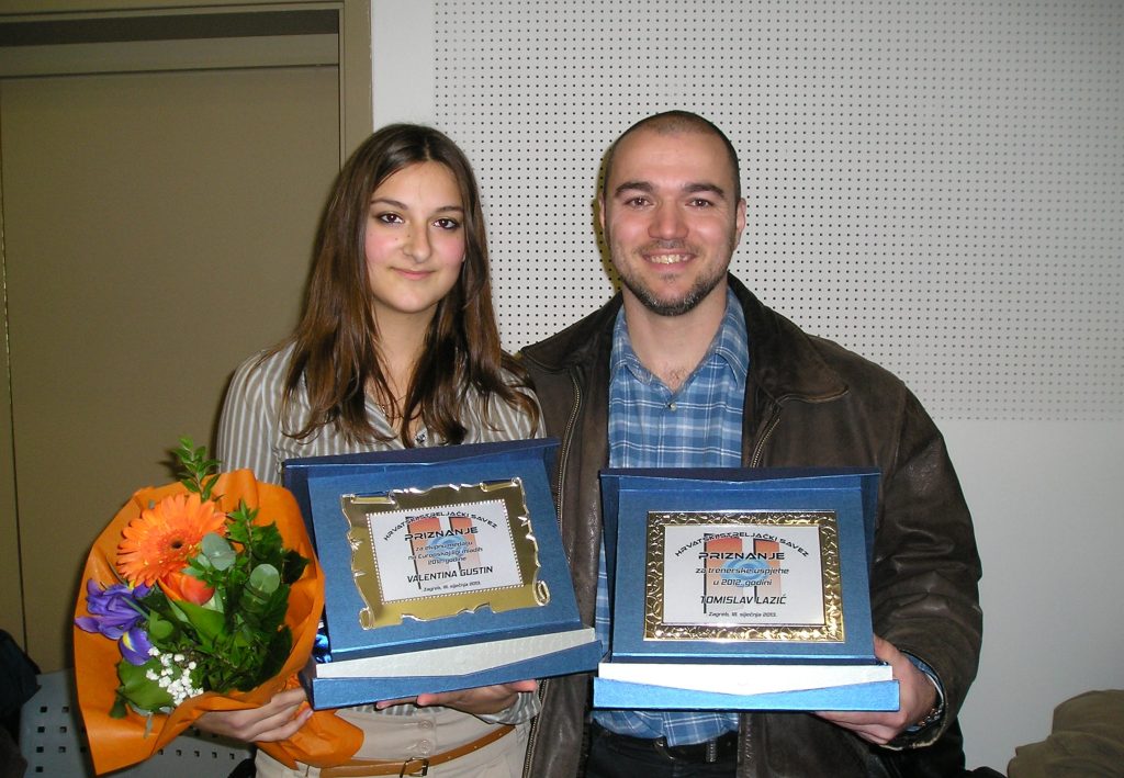 Svojim uspjesima “natjerala” je svog trenera Tomislava Lazića da izađe na pozornicu Almeria centra i preuzme nagradu za trenerska postignuća u 2012. godini. On je nesebičnim trudom savjetima i znanjem zasigurno pomogao Valentini na njezinom putu iako to skromno prešućuje. Od srca im želimo da se tamo nađu i pri dodjeli nagrada za 2013. godinu.